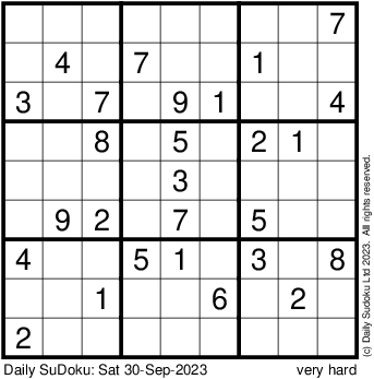 The Daily SuDoku: Sat 30-Sep-2023