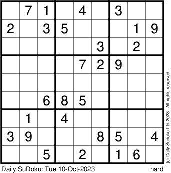 The Daily SuDoku: Tue 10-Oct-2023