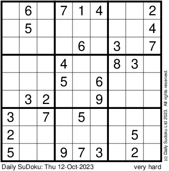 The Daily SuDoku: Thu 12-Oct-2023