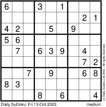 The Daily SuDoku: Fri 13-Oct-2023
