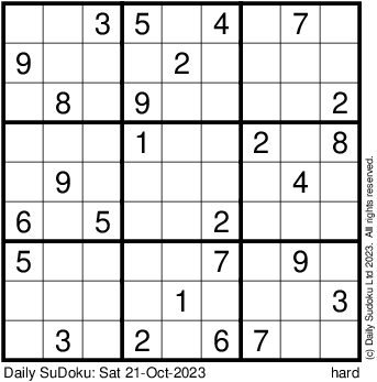 The Daily SuDoku: Sat 21-Oct-2023