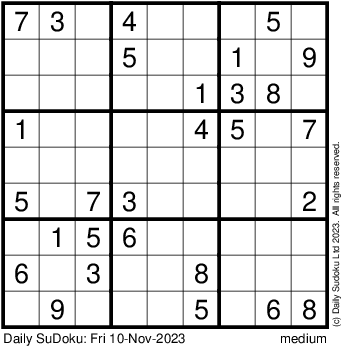 The Daily SuDoku: Fri 10-Nov-2023