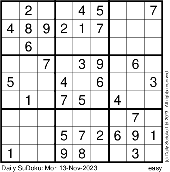 The Daily SuDoku: Mon 13-Nov-2023
