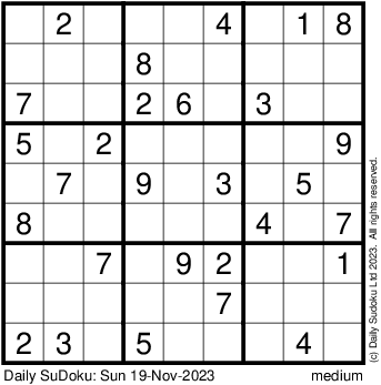 The Daily SuDoku: Sun 19-Nov-2023