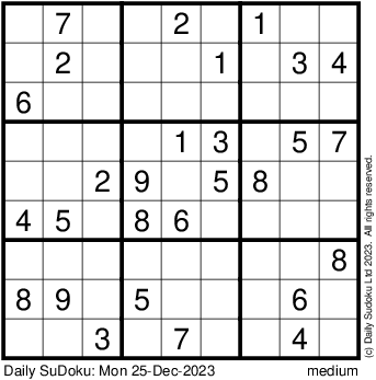 The Daily SuDoku: Mon 25-Dec-2023