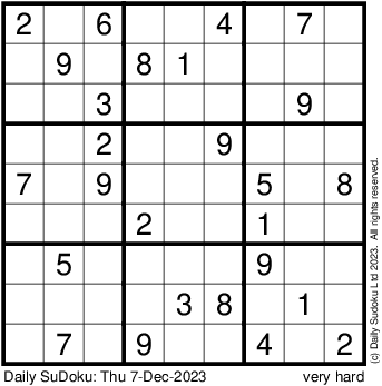 The Daily SuDoku: Thu 7-Dec-2023