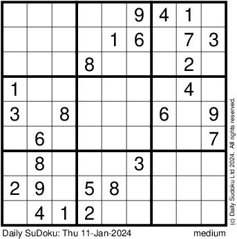 The Daily SuDoku: Thu 11-Jan-2024