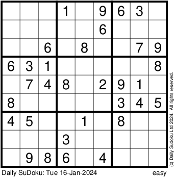 The Daily SuDoku: Tue 16-Jan-2024