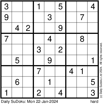 The Daily SuDoku: Mon 22-Jan-2024