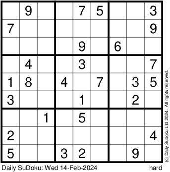 The Daily SuDoku: Wed 14-Feb-2024