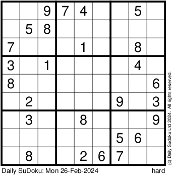 The Daily SuDoku: Mon 26-Feb-2024