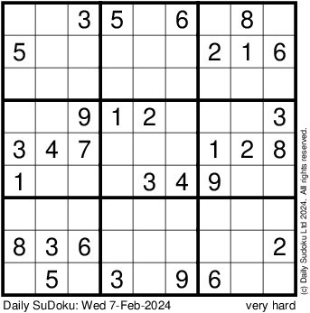 The Daily SuDoku: Wed 7-Feb-2024