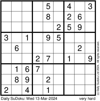 The Daily SuDoku: Wed 13-Mar-2024