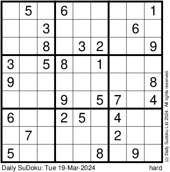 The Daily SuDoku: Tue 19-Mar-2024