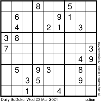 The Daily SuDoku: Wed 20-Mar-2024