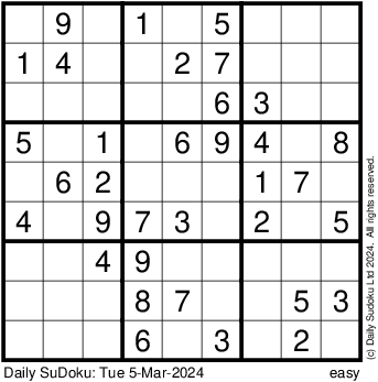 The Daily SuDoku: Tue 5-Mar-2024