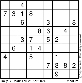 The Daily SuDoku: Thu 25-Apr-2024