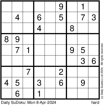 The Daily SuDoku: Mon 8-Apr-2024