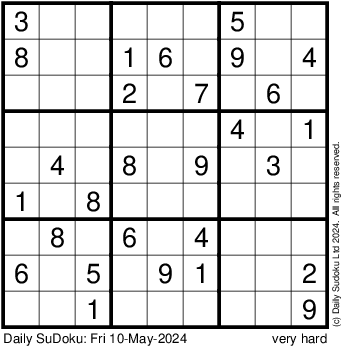 The Daily SuDoku: Fri 10-May-2024
