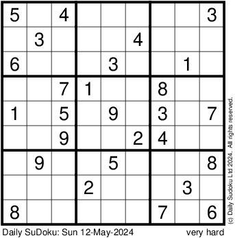 The Daily SuDoku: Sun 12-May-2024