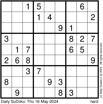 The Daily SuDoku: Thu 16-May-2024