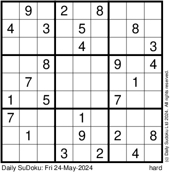 The Daily SuDoku: Fri 24-May-2024
