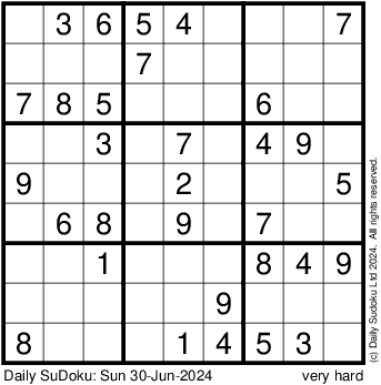 The Daily SuDoku: Sun 30-Jun-2024