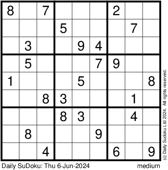 The Daily SuDoku: Thu 6-Jun-2024