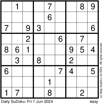 The Daily SuDoku: Fri 7-Jun-2024