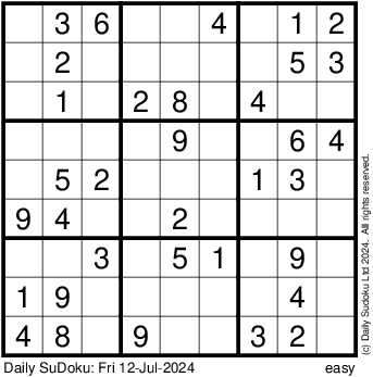 The Daily SuDoku: Fri 12-Jul-2024
