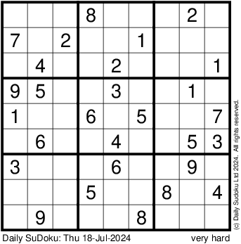 The Daily SuDoku: Thu 18-Jul-2024