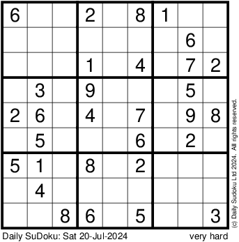 The Daily SuDoku: Sat 20-Jul-2024