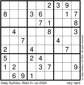 The Daily SuDoku: Wed 31-Jul-2024
