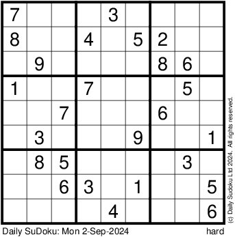 The Daily SuDoku: Mon 2-Sep-2024