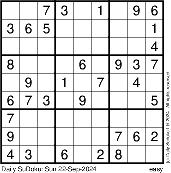 The Daily SuDoku: Sun 22-Sep-2024