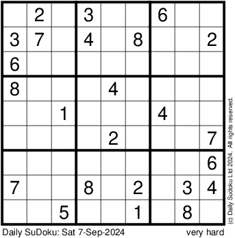 The Daily SuDoku: Sat 7-Sep-2024
