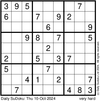 The Daily SuDoku: Thu 10-Oct-2024