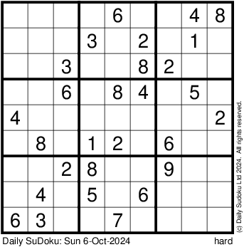 The Daily SuDoku: Sun 6-Oct-2024