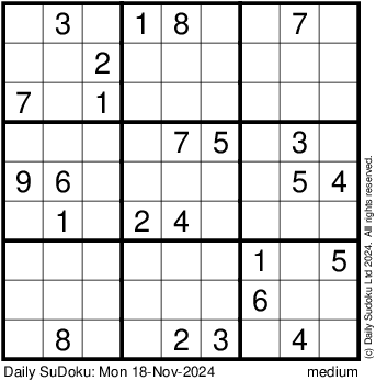 The Daily SuDoku: Mon 18-Nov-2024