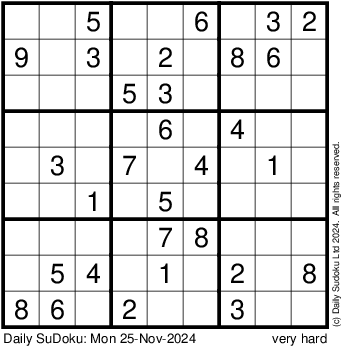 The Daily SuDoku: Mon 25-Nov-2024