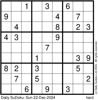 The Daily SuDoku: Sun 22-Dec-2024