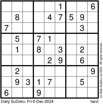 The Daily SuDoku: Fri 6-Dec-2024