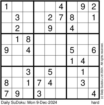 The Daily SuDoku: Mon 9-Dec-2024