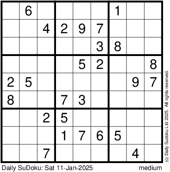 The Daily SuDoku: Sat 11-Jan-2025