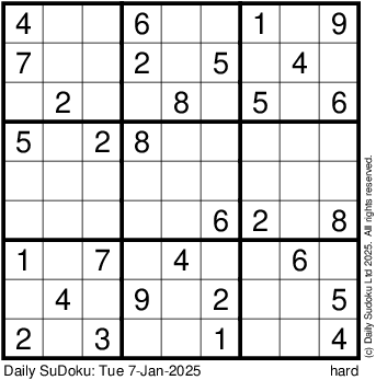 The Daily SuDoku: Tue 7-Jan-2025