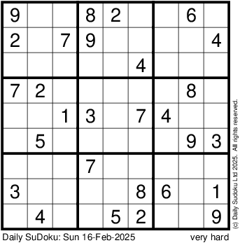 The Daily SuDoku: Sun 16-Feb-2025
