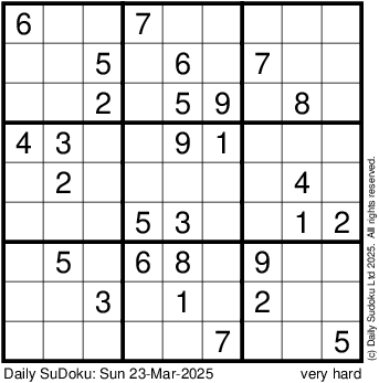 The Daily SuDoku: Sun 23-Mar-2025