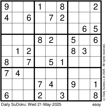 The Daily SuDoku: Wed 21-May-2025