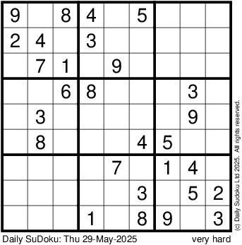 The Daily SuDoku: Thu 29-May-2025