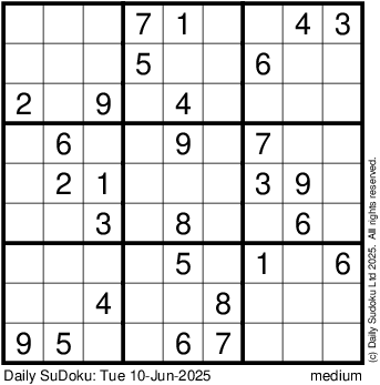 The Daily SuDoku: Tue 10-Jun-2025